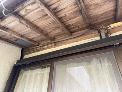 軒が雨漏りしていたらしくて、梁に沿わしている