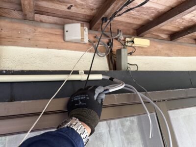 防水コンセント取替、軒下修繕、配線手直し②! -兵庫県電気工事-