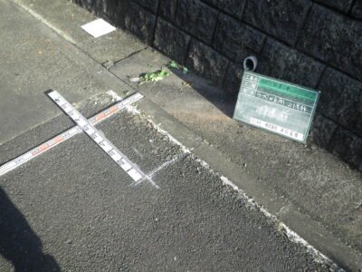 420×600㎜くらいで、アスファルトに印をいれる(‘ω’)ノ