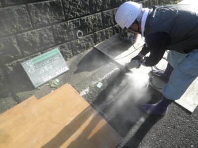 アスファルトにカッターをいれて、