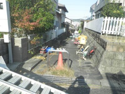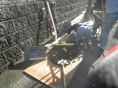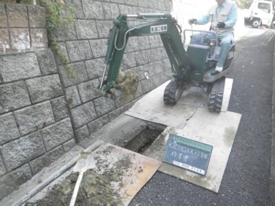 掘削した箇所は擁壁のすぐ横なので、地面のなかには