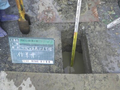 LED防犯灯、ポール新設①! -兵庫県電気工事-