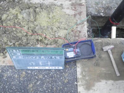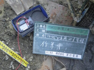 ポールの地中に埋まる部分で、アース端子を繋ぐところが