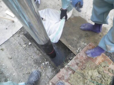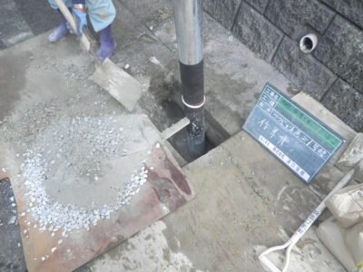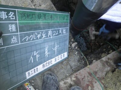 LED防犯灯、ポール新設②! -兵庫県電気工事-