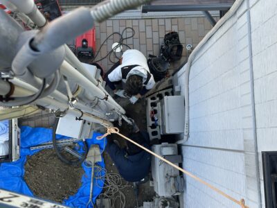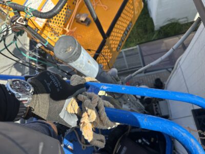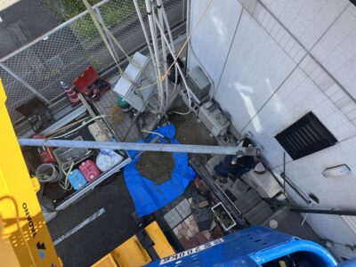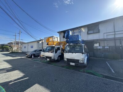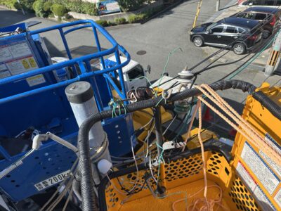 てなわけで今回は高所作業車2台を用いて施工(‘ω’)ノ