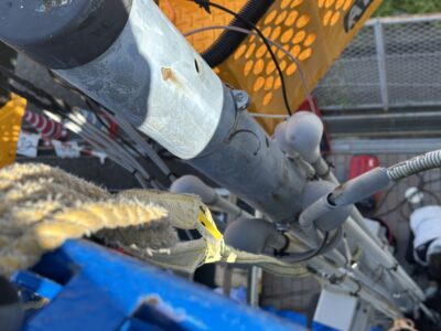 高所作業車の箱に仮くくりして、