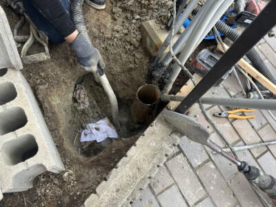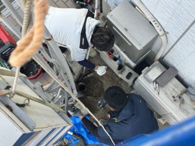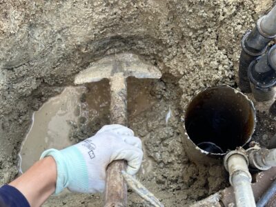 どうやら水道管を突いてしまったようです、、(; ・`д・´)