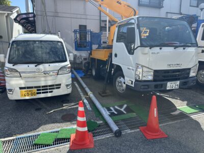 今回は引込盤と縦配管を残して、ポールだけの取替