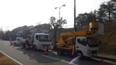 今回は、背の高い道路灯のLED化工事ですが、