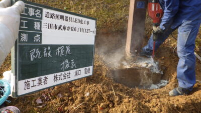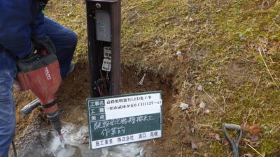 道路灯LED化、建柱作業で向き変更②! -兵庫県ポール建替工事-