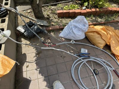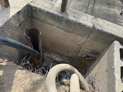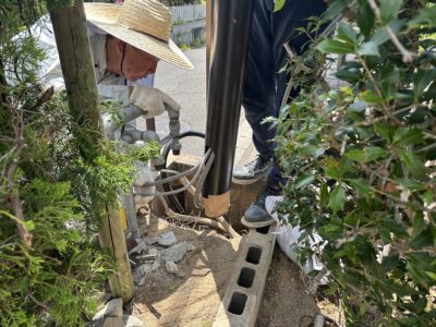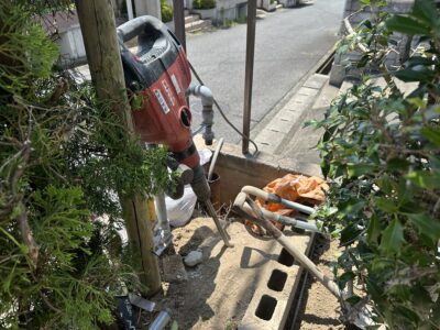 分電盤へいっている既設の2次側電線を地中で新しい