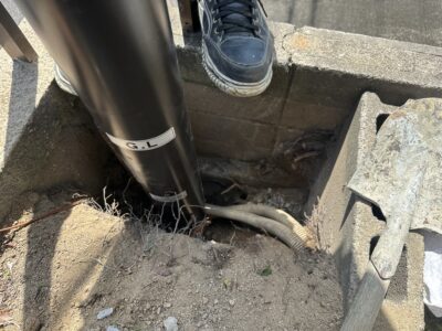 根元腐食、スッキリポール引込柱建替え②! -兵庫県電気工事-
