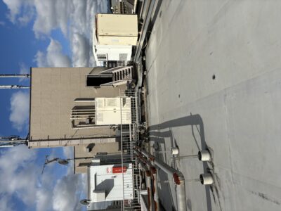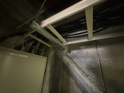 トランスの頭上にはケーブルラックがあり、天井はスラブのデッキが